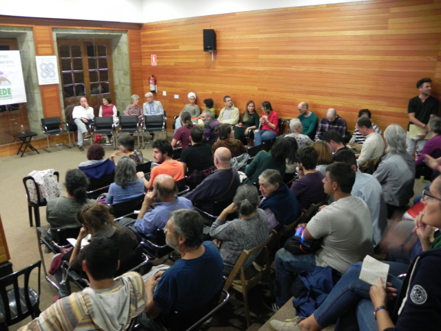 E devo sublinhar que este foi um Congresso grassroots (a partir do empoderamento local), muito apoiado em movimentos sociais e em associações que têm vindo a fazer um trabalho persistente e de grande qualidade. De entre estas, cumpre destacar a Véspera de Nada, associação dedicada ao chamado «pico do petróleo», ou seja, à crise de produção de petróleo que a curto prazo se tornará manifesta nas nossas sociedades sustentadas pelas energias carbónicas. Pertencem à Véspera de Nada muitos dos principais animadores da Rede Galega, facto que me parece fornecer um alicerce seguro e muito bem pensado ao decrescentismo galego. Ao contrário de outras latitudes, onde a reflexão sobre estes processos está quase inteiramente sediada nas Universidades, aqui, havendo embora companheiros que estão na Academia, tudo está enraizado nos espaços sociais e associativos, assim como numa certa movimentação política com origem quer em pessoas que se foram afastando do nacionalismo galego, quer de outros que passaram ou permanecem nos movimentos libertários.