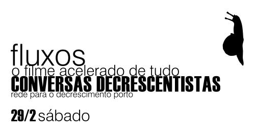 Houve um tempo em que o cinema mudo nos deixava assistir sentados à aceleração da vida moderna: via-se o actor burlesco ser esmagado pelos carros ou cair dos arranha-céus, sem nunca morrer ou ficar incapacitado. E tudo nos parecia ainda humano e aceitável desde que ficasse nas imagens. Mas essa fúria não ficou guardada no celulóide: as imagens aceleradas desse cinema eram apenas uma pálida antevisão dos fluxos nas nossas vidas. «Fluxo» é agora uma palavra que parece suavizar a incompreensão e o choque nas nossas existências. Hoje, somos o empregado que corre em competição com o processador, o passageiro que voa por tudo e por nada, o funcionário de armazém soterrado pela circulação de mercadorias da Amazon ou da nova Rota da Seda. E por nós passam estímulos de todo o tipo, somos atravessados por frequências electromagnéticas carregadas de nada, corremos mais e mais depressa por dentro das imagens. E o dinheiro, esse, fulmina-nos com a sua capacidade de tudo substituir ainda mais velozmente. No sábado, 29, vamos falar do filme real em que nos colocaram, dizendo-nos não haver maneira dele sair. Numa perspetiva decrescentista, urge contrariar a exacerbação do movimento de coisas e pessoas. Nesta sessão, conversaremos sobre novas e antigas ideias relativas à reaproximação do trabalho ao espaço de habitação, a reaproximação do tempo psicobiológico ao tempo social, a convivência entre actividades primárias, como a agricultura, e actividades secundárias, ditas de transformação. Falaremos ainda da necessidade de romper o circuito da mundialização do comércio e das suas implicações.